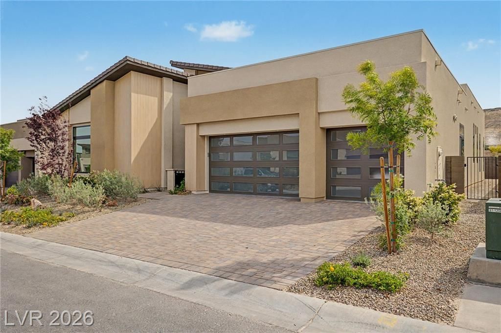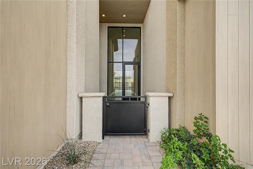 Nestled behind the exclusive guard gate of Ascension in South Summerlin, this nearly 3,449 sq. ft. single-story luxury residence by Toll Brothers blends timeless elegance with modern design and includes a desirable multi-gen suite. Inside, clean lines, soaring 16' ceilings, tile flooring, recessed lighting, and high-end finishes create a sophisticated, light-filled space. The open floor plan showcases mountain views, a cozy fireplace, surround sound, and stacking multi-panel glass doors that seamlessly disappear into one another, opening to a covered patio for effortless indoor-outdoor living. The chef's kitchen is a showpiece with quartz counters, a Sub-Zero refrigerator, Wolf appliances, abundant cabinetry, a huge walk-in pantry, and a large island. All 4 bedrooms feature private ensuites and walk-in closets, including a luxe primary retreat with spa-like bath, garden tub, and electric blackout shades. 3-car garage with Tesla EV charger. Resort-style amenities complete the lifestyle.